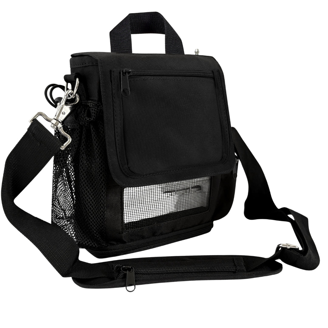 Looking for a carry bag for your Inogen One G5 & Inogen Rove 6? This comfortable carry bag can be worn on your shoulder or crossbody. Mesh panels surround your unit incased in its own pocket with room in the separate side pockets for an extra battery, cannula, wallet, keys, phone, etc. Scroll down to see all of the features this carry bag has that will make carrying your Inogen easy.