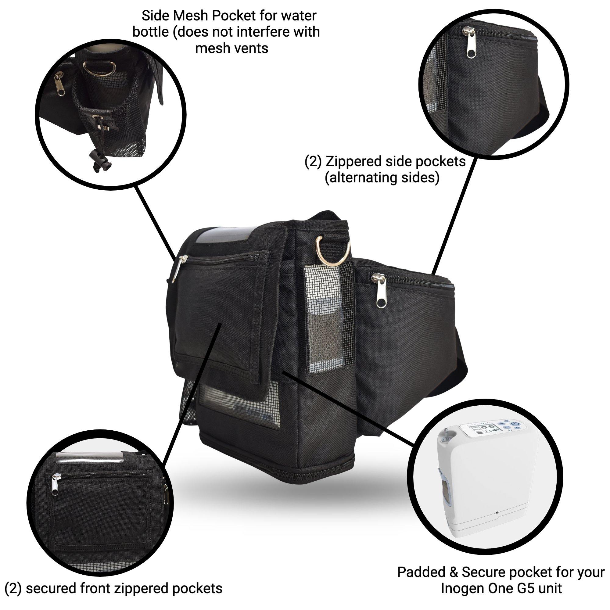 Carry your Inogen Rove 6 easily and conveniently with this black hip/fanny bag. Perfect for on-the-go use, this bag will keep your oxygen concentrator secure and easy to access. Stay active and independent without worry with this Inogen Rove 6 Hip/Fanny Bag.