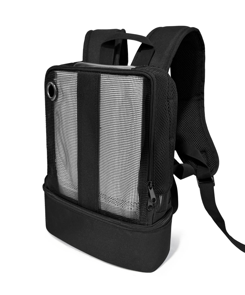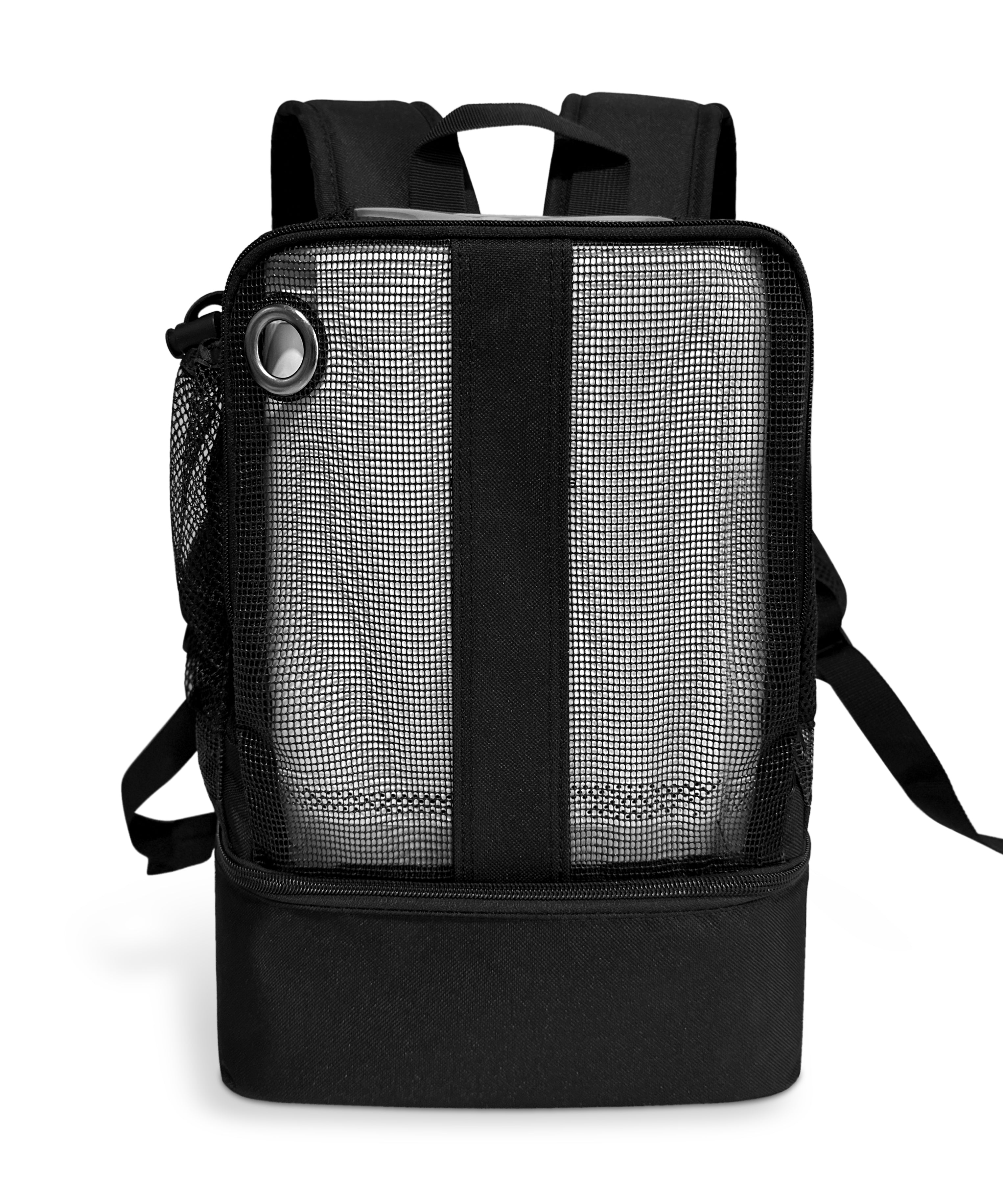 Our largest universal backpack is large enough to fit the Oxlife Liberty 2 portable oxygen concentrator space inside this mesh backpack measures: 10 in (side to side) x 10.5 (tall) x 4 width