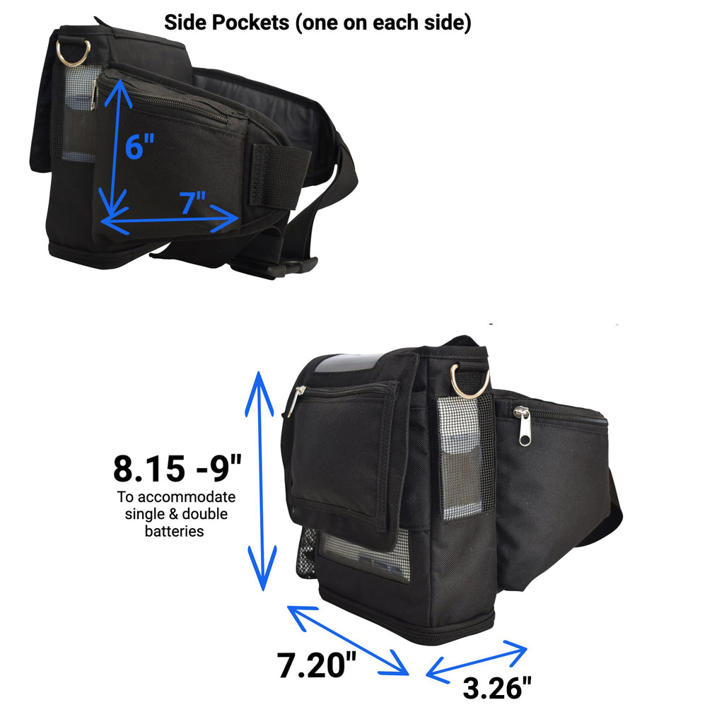 - ZIPPERED POCKETS (X2): 6” x 6” (On Waist Strap)